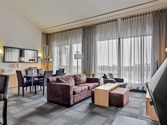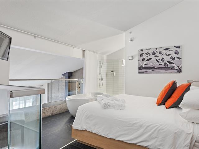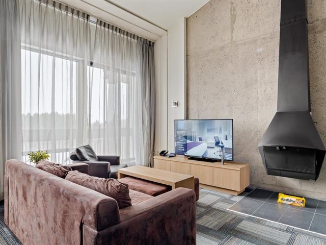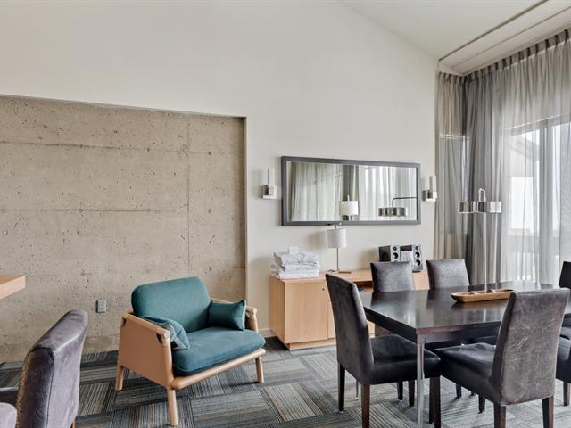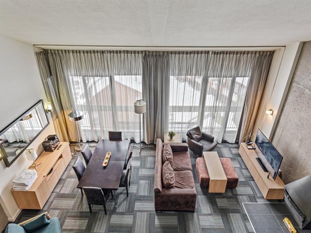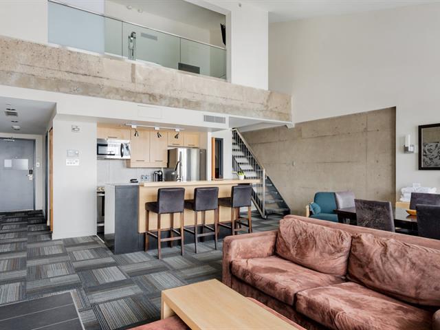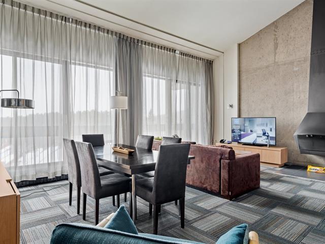 Condo Delta Mont-Sainte-Anne en formule condo Hôtel : Penthouse mezzanine double entièrement géré par l'hôtel avec partage de revenus. Le parfait pied-à-terre. Ski in ski out au Mont Sainte-Anne, sans tracas d'entretien. Formule clé en main pour les amateurs de plein air. Entièrement équipé. Accès à la piscine intérieure et extérieure, spa, gym, salle de jeux. Frais de condo incluant tout. TPS/TVQ doivent être ajoutées au prix demandé (40385936)