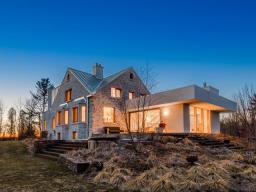 Imposante et somptueuse propriété des plus exclusives sise sur plus de 140 acres située au coeur des Cantons de l'Est. Une esthétique recherchée, un design unique, des matériaux nobles et une attention particulière aux détails qui reflète le summum du prestige. Volumes intérieurs imposants permettant de recevoir famille et amis en procurant de l'intimité pour tous. Ce domaine d'exception s'adresse à une clientèle soucieuse de s'offrir une qualité de vie exceptionnelle loin de la tumulte de la ville. Une propriété complètement repensée qui se veut à la fois un chef d'oeuvre architecturale et des plus écologique! Un coup de coeur à découvrir! (55576434)