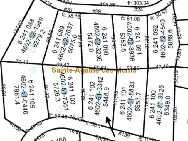 Magnifique terrain boisé de plus de 58000 pieds carré. Idéalement localisé dans le très prisé quartier du Mont-Catherine. Bénéficiant d'un ensoleillement toute la journée, ainsi qu'une vue imprenable sur les montagnes avoisinantes, cet emplacement constitue un investissement judicieux. Accès au centre ville de saint-Agathe et à l'autoroute 15 en moins de 5 minutes. Terrain desservi par les services d'aqueduc. Venez comparer! (55810919)