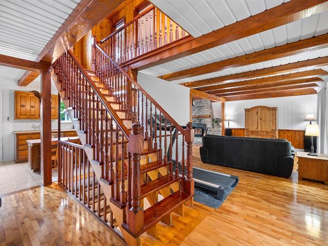Propriété unique entourée de champs, sensation campagne mais près autoroute 30 (15 min du centre-ville). Intimité totale: aucun voisin avant/arrière, cour clôturée et boisée. Cachet champêtre avec 2 foyers au bois, boiseries, très lumineux. Belle véranda arrière, balcons. 3 chambres à l'étage, chambre principale avec salle de bain attenante. Piste motoneige accessible directement. Le parfait équilibre entre tranquillité rurale et commodités urbaines! (57026612)