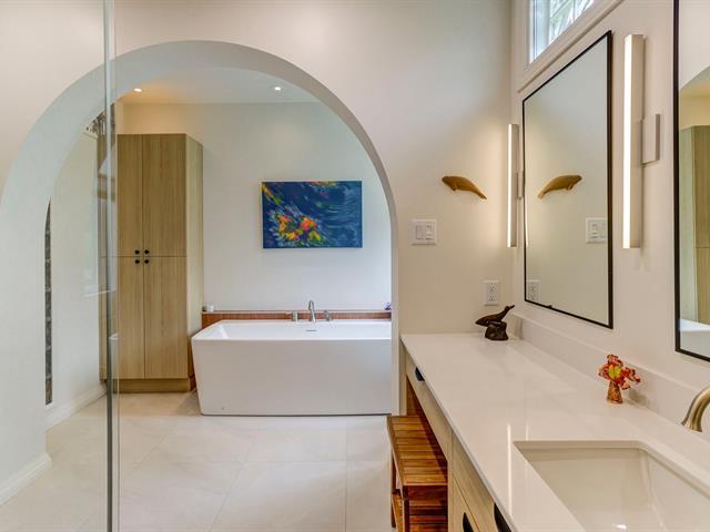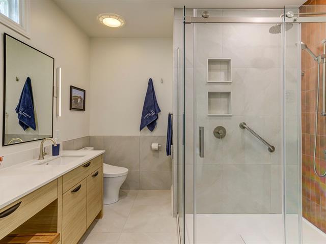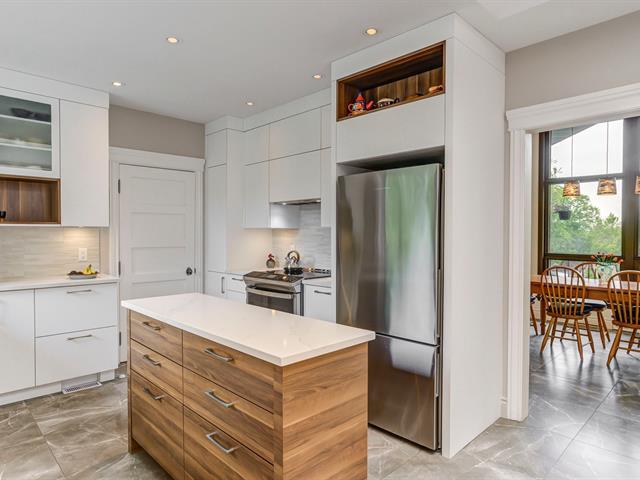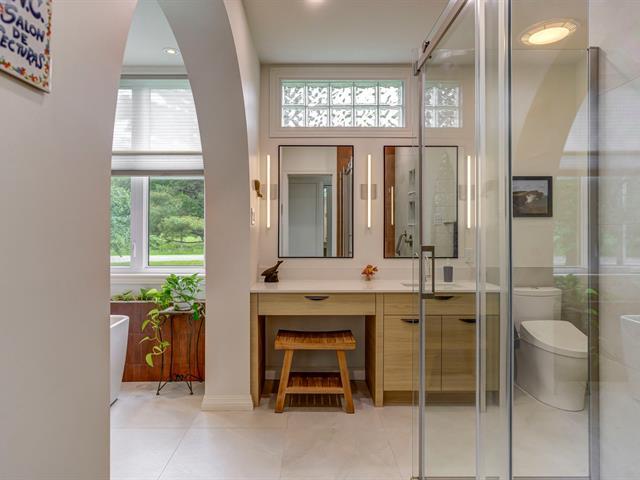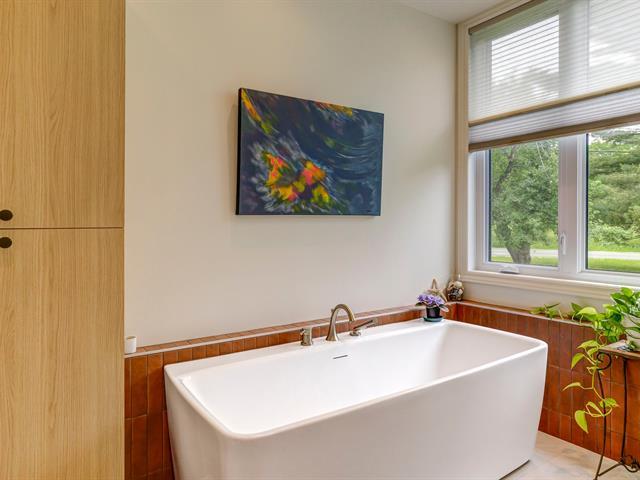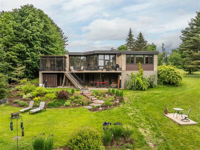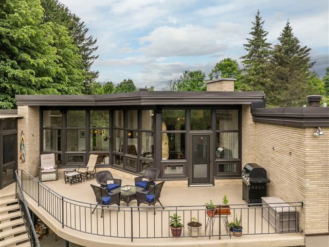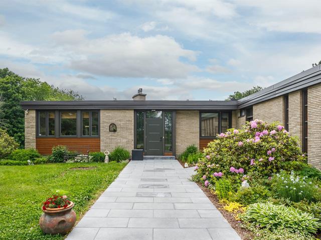 Résidence d'architecte unique de style mid-century, érigée sur un terrain paysager et boisé de plus de 4 acres ! Son architecture distinctive, sa fenestration abondante et ses volumes impressionnants créent une ambiance exceptionnelle. Aire de vie lumineuse avec foyer au gaz et accès à la terrasse, cuisine rénovée avec îlot de quartz et puits de lumière. Quatre chambres, dont une suite des maîtres avec salle de bain attenante entièrement rénovée. Plusieurs améliorations effectuées et propriété impeccablement entretenue ! Résidence d'exception offrant une belle intimité tout en étant à proximité de tous les services ! À découvrir ! (45416569)