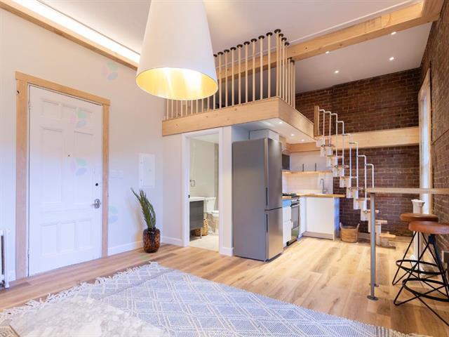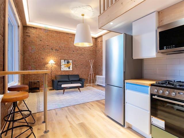 Grand Studio luminuex en plein coeur du centre-ville, mur de brique, inclus tous les electros ainsi que le chauffage et l'Electricité et l'eau chaude + renovations fait en 2025 pour le placher la salle de bain et la cuisine. Nouvelle grande fenetre sur mesure 2025. (50780671)