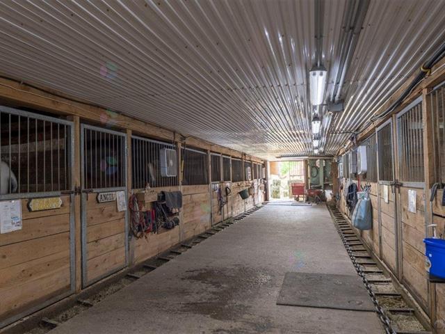 St-Philippe (Montérégie) : À quelques minutes de Brossard et du Quartier DIX30, ce Centre équestre de 85.46 acres comprend deux manèges intérieurs, une écurie avec 60 box, une superbe forêt aménagée en sentiers pour les randonnées, une charmante maison de campagne de 3 chambres, ainsi qu'une maison mobile. Idéal pour la pension de chevaux, les cours d'équitation (western, barils, etc.),l'entraînement et les randonnées, ce Centre équestre à vendre est déjà opérationnel et bénéficie d'une réputation bien établie. La forêt est partagée en copropriété indivise avec un voisin. TPS/TVQ doivent être ajoutées au prix demandé (49272181)
