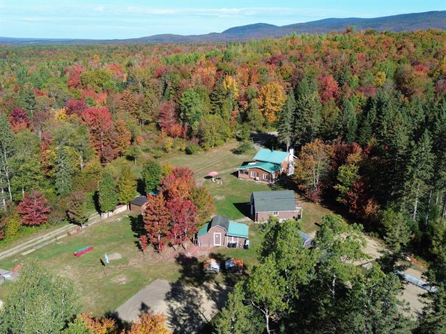Splendide fermette de 48,1 acres avec vue panoramique sur les montagnes. La maison, soigneusement entretenue, propose une cuisine et une salle à manger à aire ouverte, un salon lumineux avec plafond cathédrale et une jolie véranda pour admirer le paysage. Cette propriété comprend également un terrain richement boisé traversée par une rivière, un garage à deux étages, une cabane à sucre artisanale, une vaste remise, un poulailler, deux serres, plusieurs jardins et arbres fruitiers. Également un excellent secteur pour la chasse, ce domaine est un véritable paradis pour les amoureux de la nature et les passionnés d'autosuffisance! (45194640)