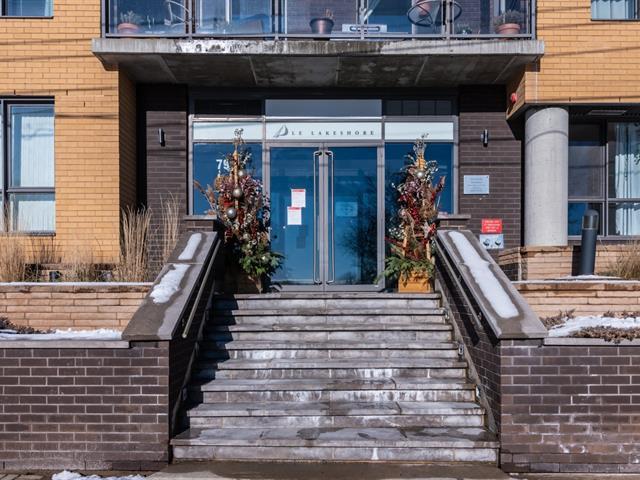 Condo dams le prestigieux immeuble "Le Lakeshore" à Dorval dessiné par les architectes Geiger Huot. Unité de deux chambres et grande salle de bain situé au 4e étage avec stationnement intérieur. Concept ouvert regroupant salle familiale / salle à manger / cuisine / balcon, parfait pour recevoir famille et amis. Près du bord de l'eau, centre commercial, autoroute 20 et aéroport. (38008414)