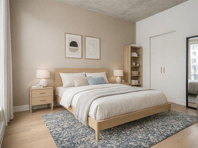 Situé au 4e étage d'un immeuble écoresponsable bien géré avec piscine intérieure, sauna, gym, chalet urbain, terrasse BBQ et jardins, ce condo d'une chambre offre un espace de vie lumineux au coeur du Vieux-Rosemont. L'aire ouverte comprend une cuisine avec îlot, un salon convivial et un balcon privé. Chambre fermée avec walk-in, salle de bains avec bain et douche vitrée indépendante. Échangeur d'air avec chauffage et climatisation, rangement et espace pour vélo inclus. À distance de marche du parc Pélican, des Shops Angus et des commerces de proximité. (42627543)