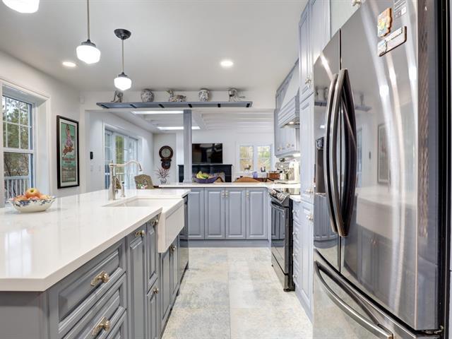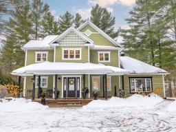 Magnifique domaine riverain offrant un cadre de vie exceptionnel. Cette maison immaculée de 2 380 pi², perchée sur une colline, profite de vues spectaculaires sur la rivière Cherry et le terrain de golf d'Orford. Répartie sur trois niveaux, elle propose une configuration idéale pour une vie intergénérationnelle, le tout sur un terrain d'un acre aux jardins champêtres adossés à la rivière. Arbres à fleurs, buissons, vivaces et arbustes fruitiers composent un environnement naturel intime. Située dans un cul-de-sac, avec services municipaux, à quelques minutes de Magog, du parc national du Mont-Orford, des sentiers, du ski et de Sherbrooke. (48054127)