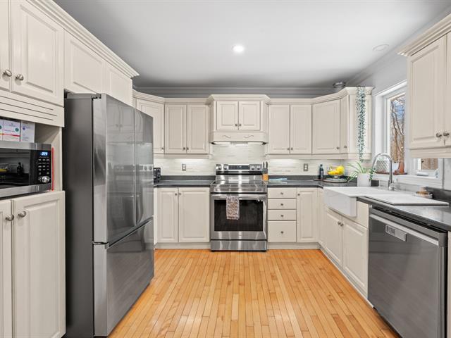 Belle et spacieuse propriété de 4 chambres située sur un grand terrain boisé, dans un secteur paisible à proximité du village. Propriété soigneusement entretenue et améliorée au fil des ans par les propriétaires actuels. Intérieur chaleureux offrant de grandes pièces conviviales, une véranda 3 saisons, une salle familiale avec poêle au bois et portes françaises donnant accès à la cour arrière. Beaucoup de rangement. Grand garage double avec accès direct au sous-sol. Terrain bien aménagé et paysagé, avec piscine hors terre. Située dans un quartier homogène, tranquille et familial. Une visite s'impose! (44920495)
