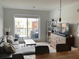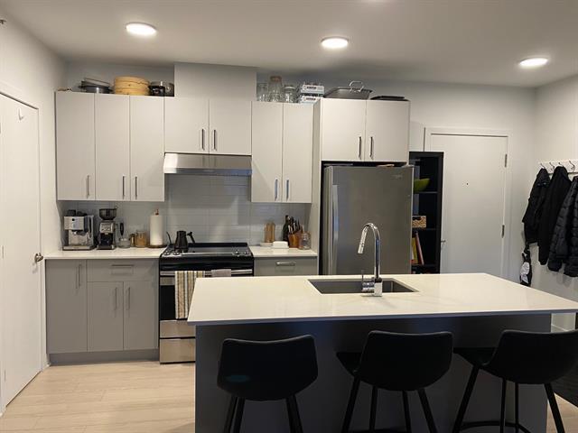 (CESSION DE BAIL) Superbe condo locatif (892 pc), bien éclairé, situé au dernier étage et à 1 minute à pieds du métro Sauvé. Ascenseur. 5 électroménagers inclus (poêle, frigo, laveuse/sécheuse, lave-vaisselle). Deux (2) spacieuses chambres, comptoir de quartz, climatisation centrale/ échangeur d'air, rack à vélo. Possibilité de louer un espace de stationnement intérieur ET un locker pour un léger supplément ($$). Possibilité d'avoir jusqu'à 2 animaux domestiques (moins de 40 lbs/chaque). Idéal pour couple qui désirent trouver un pieds à terre rapidement. Fin du bail est prévu pour le 31 août 2026, avec la possibilité de renouveler. (47879758)