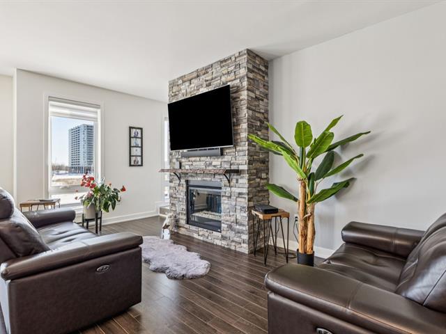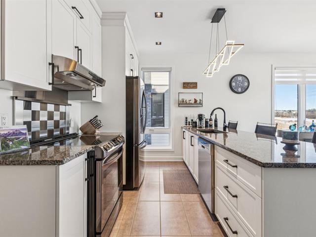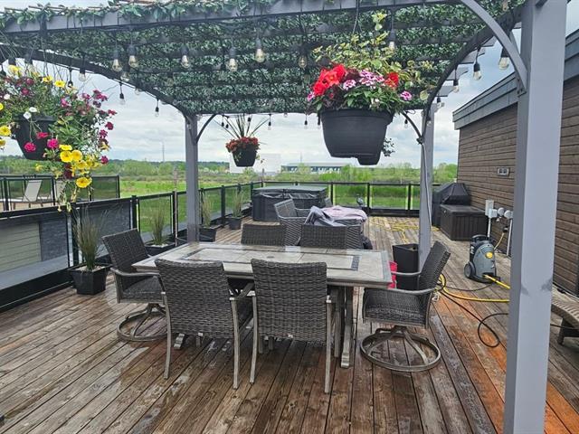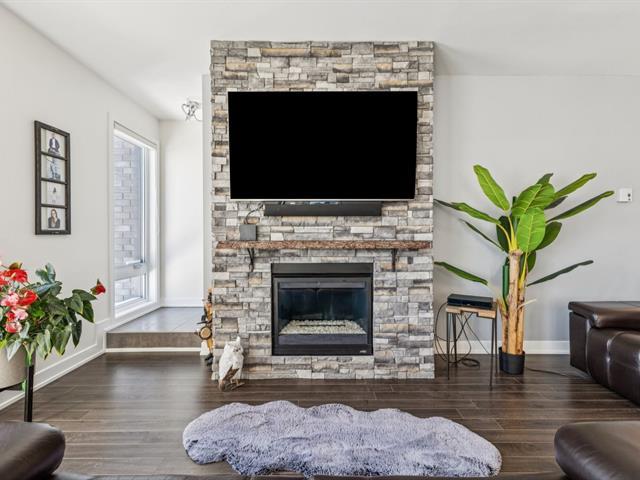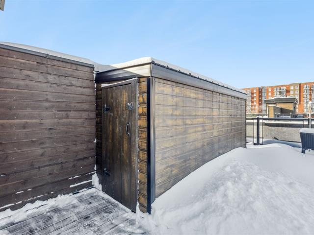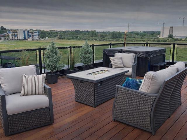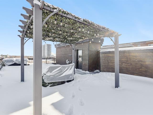 Situé en plein coeur du centre-ville de Gatineau, ce superbe condo de 1 135 pi² se distingue par sa spectaculaire terrasse privée avec spa sur le toit de 1 175 pi², avec remise intégrée. Il propose 2 chambres de bonnes dimensions, une salle de bain rénovée avec douche vitrée indépendante et une magnifique cuisine haut de gamme aux armoires blanches pleine hauteur, prête pour cuisinière au gaz ou électrique. Foyer au gaz naturel avec manteau de pierre, climatisation murale (2024), nouveaux luminaires, stores haut de gamme, finitions noires (2025) et peinture fraîche (2024). 2 stationnements sous un abri, secteur de choix. (46226944)