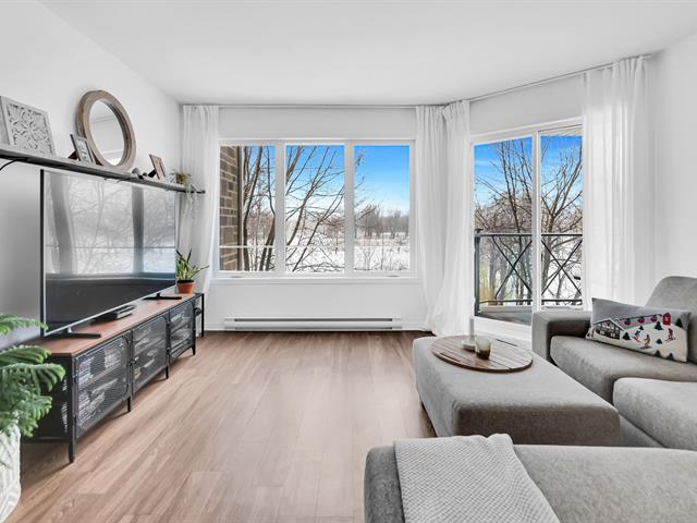 Superbe condo contemporain 2014 à aires ouvertes! Lumineux salon avec grande fenestration et porte-patio menant à une terrasse intime, sans voisin arrière, vue sur le boisé (l'ancien golf) et magnifiques couchers de soleil. Cuisine fonctionnelle avec comptoir-lunch, grande salle à manger, 2 chambres, salle de bain spacieuse avec bain et douche vitrée, salle de lavage. Secteur paisible de Chambly, près des parcs, écoles, services et transports. Stationnement et rangement inclus. Un milieu de vie exceptionnel! (41355996)