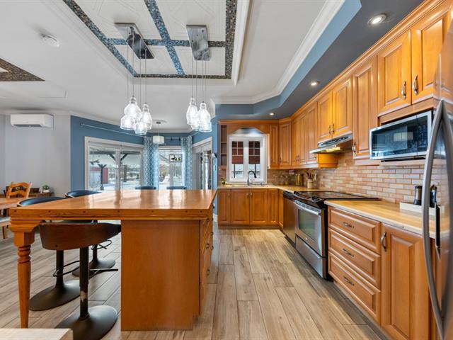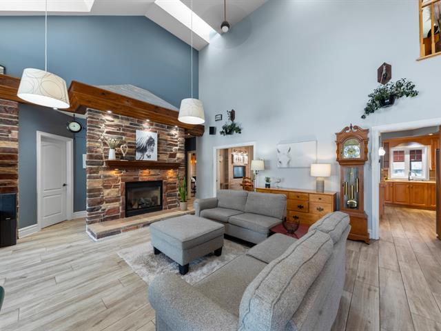 GRAND DOMAINE SITUÉ EN VILLE ! Imposante propriété construite en 2005 offrant 4 chambres à coucher, 2 salles de bain complètes + une salle d'eau. Salon spectaculaire avec plafond cathédrale de 18 pieds. Plancher chauffant sur toute la superficie du RDC. Aucun sous-sol. Garage triple attaché ainsi qu'un garage quadruple détaché de style entrepôt. Piscine creusée avec spa intégré, couverte d'un abri 3 saisons permettant de profiter de la saison estivale plus longuement. Le tout érigé sur un immense terrain d'environ 80 000 pi² avec services municipaux, une rareté en ville. Ce véritable domaine urbain a énormément à offrir. À NE PAS MANQUER! (45791017)