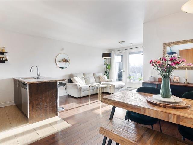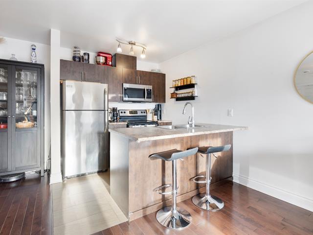 CONDO, ST-HENRI | Cette charmante unité de 800 pieds carrés, orientée sud et située au 3e étage, est baignée de lumière naturelle et offre un espace de vie et de salle à manger à aire ouverte accueillant. Le condo dispose de deux chambres de bonne taille et d'un bureau qui sert parfaitement d'espace de travail. Profitez de la commodité d'un garage intérieur et de frais de copropriété peu élevés. À seulement 2 minutes à pied des épiceries et du métro Place Saint-Henri, ce condo allie confort, charme et praticité, parfait pour une vie agréable dans un quartier dynamique et recherché. (54244989)
