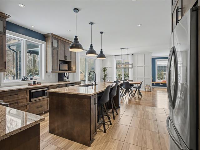 Somptueuse et élégante, cette propriété d'exception est érigée sur un vaste terrain de près de 25 000 pi², sans voisin arrière, offrant intimité et tranquillité. Pensée pour la vie de famille, elle propose 4 chambres à coucher, dont 3 sur le même niveau, 3 salles de bain complètes ainsi qu'une salle d'eau. Synonyme d'espace et de confort, cette demeure lumineuse saura accompagner votre famille à chaque étape de sa croissance. À l'extérieur, profitez d'une terrasse couverte, d'une piscine creusée et d'un environnement naturel remarquable. Vue partielle sur le fleuve Saint-Laurent, conférant une touche de prestige à cette propriété d'exception. (41415380)