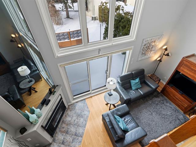 Superbe maison de ville à étages en rangée de coin et en copropriété, secteur Collectivité, positionnement tranquille en retrait de la rue, luminosité impressionnante avec fenestration surdimensionnée et plafond haut, 2 CAC avec possibilité d'en faire une 3e au sous-sol, de nombreuses rénovations de qualité dont la cuisine et la salle de bain, foyer électrique, thermopompe centrale, 2 espaces de stationnement au garage et rangements intérieur, penderie de cèdre, terrasse intime avec haies, de nombreuses inclusions, à proximité des sentiers pédestres, parc Michel-Chartrand, pistes cyclables, golf le Parcours du Cerf et transport en commun ! (38944896)