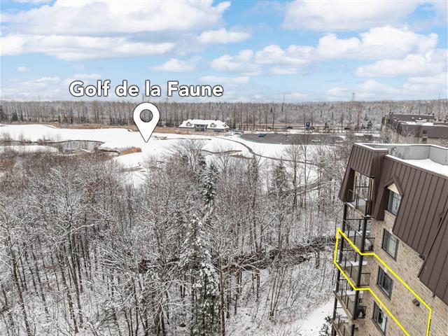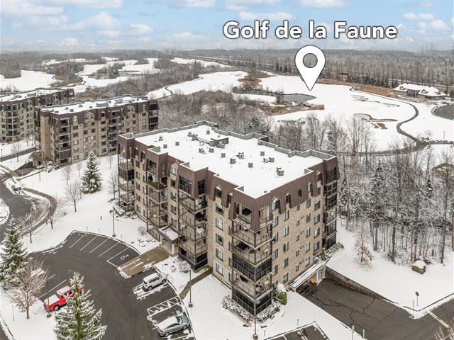 Domaine de la Faune -- Vue sur le golf. Condo de coin 2 chambres situé au 4e étage, offrant une aire de vie ouverte et lumineuse grâce à une fenestration abondante. Grande terrasse couverte, piscine extérieure, 1 stationnement extérieur et 1 rangement intérieur. Copropriété très bien gérée. Emplacement recherché, à proximité de tous les services. Disponible rapidement. (41009849)
