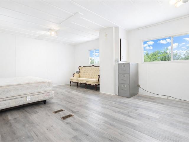 Nichée dans un cul-de-sac paisible, cette charmante propriété repose sur un terrain spacieux de plus de 12 000 pi², sans voisin à l'arrière, bordé d'une magnifique forêt offrant une intimité et une tranquillité exceptionnelles. Le toit a été refait en 2023, À l'origine, la maison comptait deux chambres. Un mur a été retiré pour créer une grande chambre. Il est facile de la reconvertir en deux chambres. Offrant quatre espaces de stationnement, la maison allie confort et praticité. Elle comprend actuellement une grande chambre, et -- un cadre idéal p our les couples, petites familles . (55638404)