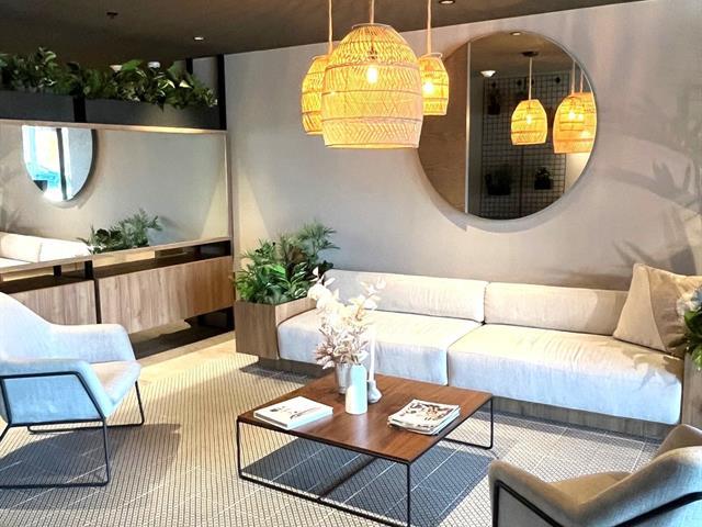 Les Cours Bellerive, condo récent - unité de coin - très bien insonorisé et construction de qualité supérieure, 2 chambres, balcon privé, espace de stationnement intérieur avec brut pour borne d'auto électrique et rangement (locker). Magnifique terrasse sur le toit meublée avec BBQ. Accès sécuritaire à l'immeuble avec interphone. Salle d'exercice, ascenseurs, magnifique lobby aménagé. (56589364)