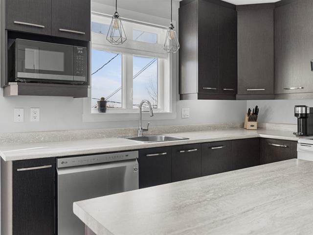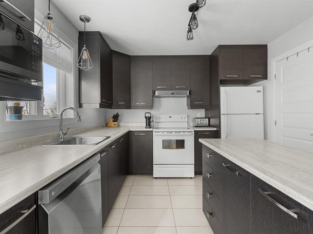 Jumelé clés en main sur deux étages, construction 2014, quartier impeccable et familial. Belle aire ouverte au rez-de-chaussée. Maison super lumineuse. Cuisine au goût du jour avec vue sur la cour. De beaux planchers de bois franc, grande porte-patio menant à une superbe terrasse en bois avec vue sur la ville. Trois chambres, salle de bain complète avec douche indépendante et salle d'eau. Cour clôturée, impeccable. Thermopompe murale et 4 stationnements. Disponible dès le 29 juin. Visite dès le 24 janvier. (43096758)