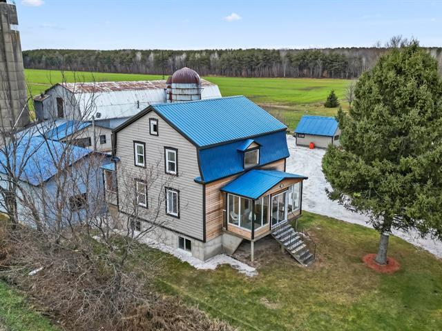 Située à l'entrée du village de Saint-Sylvère, cette fermette entièrement rénovée offre un parfait équilibre entre tranquillité et proximité des services. La maison principale comprend 4 chambres à l'étage, 1 chambre au rez-de-chaussée avec salle de bain, ainsi qu'un sous-sol lumineux avec entrée indépendante, permettant l'aménagement de 2 chambres supplémentaires ou d'un logement polyvalent. La propriété se distingue par ses bâtiments annexes impressionnants : Garage double (27 x 32 pi, hauteur 12 pi) Second garage (16 x 19 pi) Bâtisse multifonctionnelle de 100 x 35 pi, offrant près de 8 000 pi² exploitables ( voir addenda) (50844408)