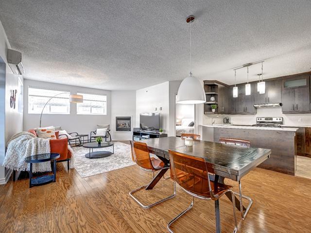 Condo 2 chambres au Carrefour des Fleurs à Lachenaie. Lumineux, aires ouvertes avec foyer au gaz au salon, il offre une grande chambre principale avec walk-in et un balcon privé au rez-de-jardin, parfait pour vos cafés du matin. La cuisine a été mise à jour avec un comptoir en quartz. Le condo est équipé d'une thermopompe, d'un rangement intérieur et de 2 stationnements. Alliant tranquillité et proximité des services, vous serez à quelques minutes des autoroutes, commerces, écoles, parcs, hôpital, restaurants et Costco. Le meilleur rapport qualité/prix du secteur, une visite s'impose! À qui la chance? (57154715)