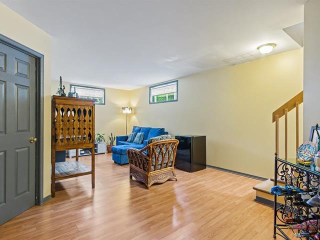 Idéal comme premier achat! Beau jumelé situé dans un secteur en demande, près de tous les services, dont hôpital, écoles primaire et secondaire, autoroute et plus encore. Propriété bien entretenue comprenant 2 chambres de bonnes dimensions, 2 salles de bains, ainsi qu'un salon, une cuisine et une salle à manger à aire ouverte avec poêle au bois. Sous-sol complètement aménagé offrant du rangement et une grande salle familiale. Joli terrain aménagé, entouré d'une haie de cèdres, avec remise et joli patio couvert. C'est à ne pas manquer! (50148666)
