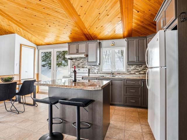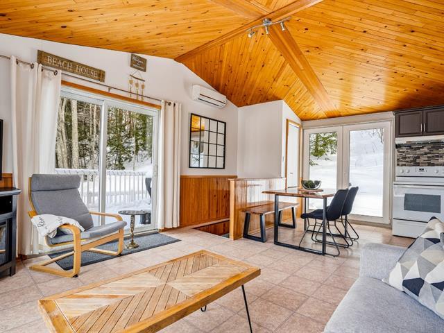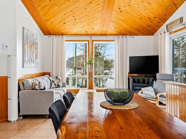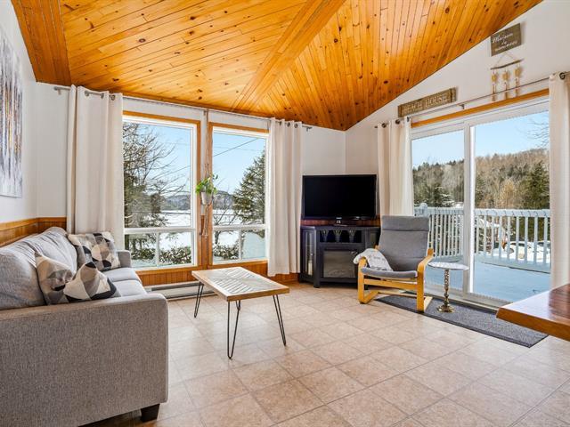Au Havre du Grand Lac, charmante propriété dans un environnement paisible situé dans un emplacement recherché. Accès au lac de l'autre côté de la rue, idéal pour baignade et activités nautiques. Spa privé 4 saisons, terrasse intime avec vue sur le lac et espace feu ext. viennent bonifier l'expérience. Capacité confortable d'accueil de 6 personnes. Aire de vie lumineuse regroupant cuisine, s. à manger avec accès extérieur et salon, 2 chambres au rez-de-chaussée, sous-sol aménagé avec s. familiale et poêle à bois. Excellente opportunité comme résidence secondaire ou investissement locatif. À voir! **LOCATION COURT-TERME PERMISE** CITQ TPS/TVQ doivent être ajoutées au prix demandé (39326831)