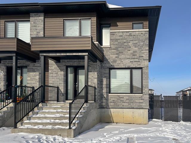 Maison de construction récente jumelée sur coin de rue, offrant 4 chambres à coucher, 2 salles de bains complètes (+ une salle d'eau au Rez-de-jardin) et un sous-sol entièrement aménagé. La chambre principale contient une grande fenestration et un walk-in fonctionne. Le terrain est spacieux et clôturé, parfait pour une famille. Située dans un quartier neuf très recherché, à deux pas des écoles, parcs, épiceries et garderies de Huntingdon. Occupation rapide possible. Une propriété moderne situé dans un environnement familial, calme et accessible ! (49027649)