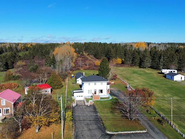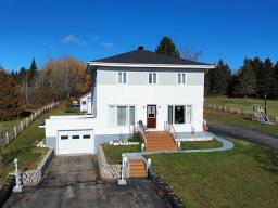 Située dans un secteur paisible, cette propriété est sise sur un terrain intime de plus de 4 acres, sans voisin à l'arrière, offrant calme et intimité. Elle propose 3 chambres confortables à l'étage avec la possibilité d'une supplémentaire selon vos besoins. La maison séduit par sa luminosité abondante grâce à une fenestration généreuse. La cuisine fonctionnelle avec armoires en chêne et les planchers de bois ajoutent chaleur et cachet. Salle de lavage indépendante, entrée asphaltée, garage intégré et second grand garage à l'arrière complètent cette propriété soigneusement entretenue, idéale pour ceux qui recherchent espace et quiétude. (56553869)