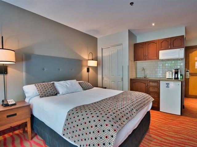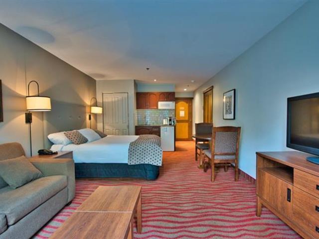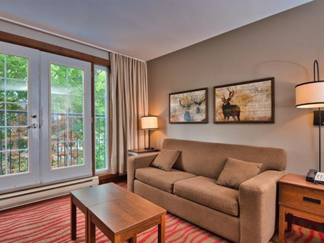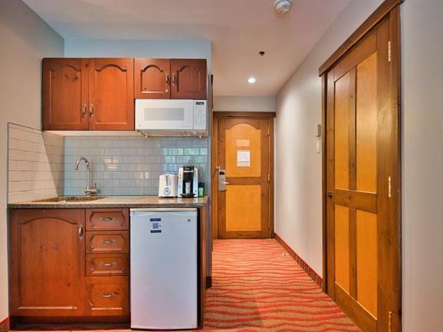 Tour des Voyageurs II #387: À l'entrée du village piétonnier, joli studio entièrement rénové offrant une petite cuisinette, un lit queen, une causeuse divan-lit, et un foyer au gaz. Cet élégant condominium-hôtel de style campagnarde offre un centre de conditionnement physique, piscine et bistro-café. Situé à quelques pas des pentes de ski, vous serez combler par toutes les commodités de proximité. TPS/TVQ doivent être ajoutées au prix demandé (42214488)