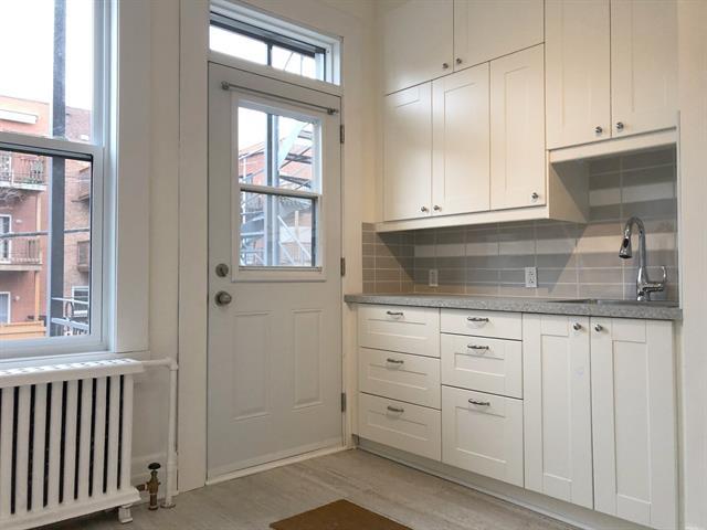 CHAUFFAGE ET EAU CHAUDE inclus ! Disponible immédiatement ! 1 chambre + bureau ouvert. Rénové : planchers sablés-vernis, peinture, cuisine et salle de bain. Électros inclus. Buanderie en face. Cachet, plafond hauts. Balcon à l'arrière. Non fumeur, seulement 1 chat permis (pas de chien). Certaines photos sont meublées virtuellement. (48963774)