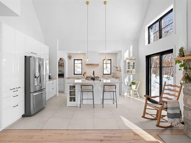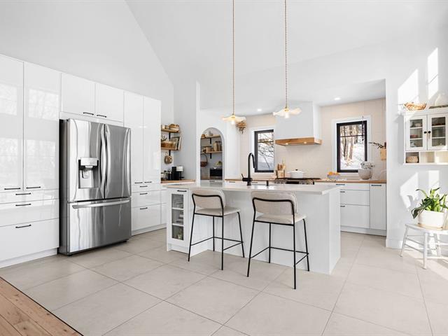 Propriété unique et exceptionnelle, nichée sur un magnifique terrain boisé de plus de 45 000 pi² offrant une vue panoramique sur l'eau. L'intérieur séduit par ses plafonds cathédrale, ses espaces lumineux et ses matériaux de qualité. La cuisine moderne, pensée pour les amateurs de gastronomie, dispose d'une entrée au gaz pour le four et s'intègre parfaitement aux aires de vie conviviales. La maison propose quatre chambres à coucher et deux salles de bain complètes. Le sous-sol entièrement aménagé offre de vastes espaces polyvalents, incluant bureaux, chambre supplémentaire, salle de lavage et rangement, idéal pour télétravail et vie familiale (42625994)
