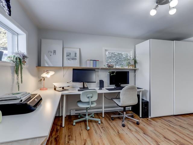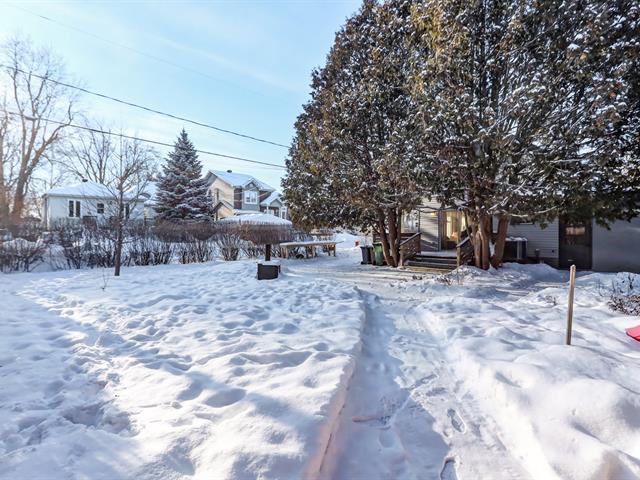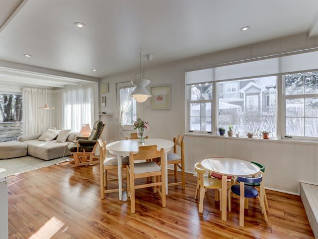 Chaleureuse maison sur un coin de rue avec un grand terrain intime. Espace de vie très lumineux avec abondante lumière naturelle toute la journée. Propriété pleine de cachet, avec un aménagement fonctionnel et une salle de bain fraîchement rénovée. Deux chambres à l'étage. Salon accueillant avec porte-patio menant à la cour arrière et au balcon. Grande cour lumineuse et bordée d'une haie avec espace de jeux, remise et plus. Idéalement située à proximité des écoles, de la bibliothèque et de tous les services. À distance de marche du parc riverain, de la piste cyclable et de la piscine. Accès rapide aux autoroutes 640 et 19. (57973695)