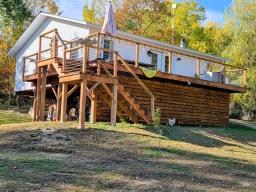 Ferme d'agrément de 8 acres avec bungalow récemment rénové comprenant 2 chambres à coucher et un sous-sol avec sortie extérieure et poêle à bois. Concept ouvert, grande terrasse, immense garage/atelier, grand poulailler et divers abris. Cultivez vos propres légumes, élevez des poules et récoltez bien sûr beaucoup d'oeufs ! À 45 minutes de la ville. (45838735)