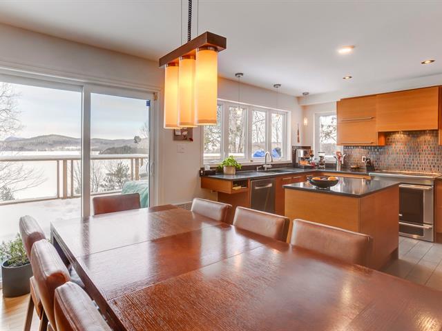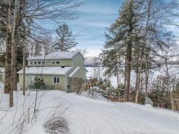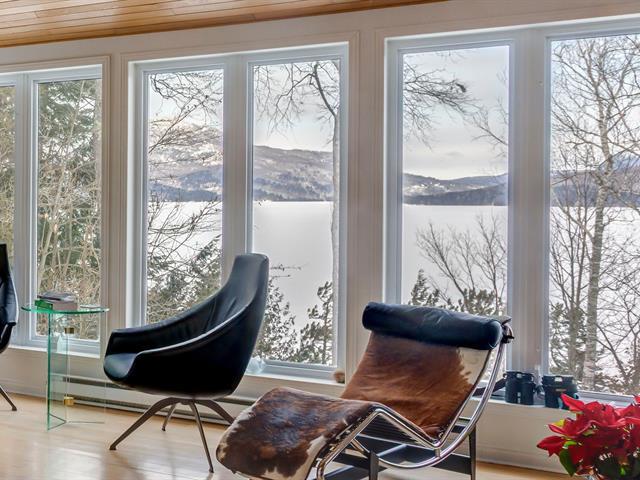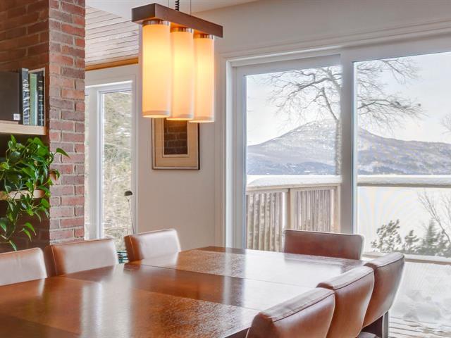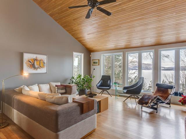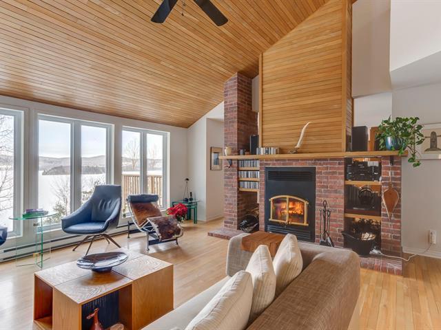 AU BORD DU LAC MEMPHRÉMAGOG, à flanc de montagne, offrant des points de vues spectaculaires sur le lac, les couchers de soleil ainsi que le mont Owl's Head. Résidence de campagne const. 1997 offrant une fenestration omniprésente laissant entrer toute la lumière naturelle. 3 c.c., 2,5 s.b. foyer, plafond cathédrale ainsi que cuisine rénovée. Un littoral de 172' en bordure du lac sur ce terrain boisé et en pente avec sentier menant au au quai commun. Possibilité d'y installer votre propre quai. Secteur tranquille du lac tout juste en face de la Pointe Magoon. (47738568)