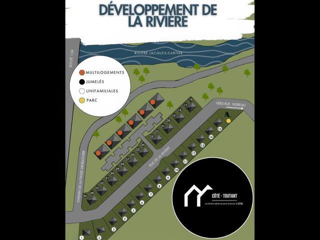 Jumelé à partir de 283 500+tx (terrain et jumelé). Au coeur du développement de la Rivière, ces maisons jumelées neuves s'implantent dans un environnement paisible et recherché, près du chemin de la Passe-Migratoire. Plans disponibles par le constructeur (possibilité d'apporter votre plan). À proximité de la rivière et des espaces verts, et à quelques minutes des services et commerces de Donnacona, elles combinent nature et accessibilité. Le prix de base inclut fenêtres hybrides aluminium noir, escalier en bois franc, planchers flottants et céramique, échangeur d'air, revêtement CanExcel et pierre, ainsi qu'un mur mitoyen insonorisé. TPS/TVQ doivent être ajoutées au prix demandé (41865036)