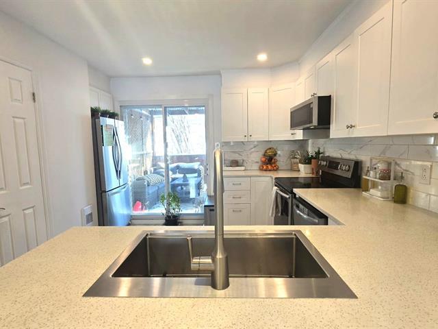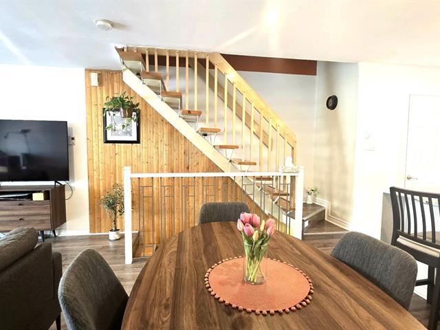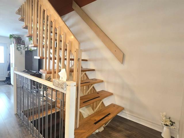 Jolie propriété rénovée (cuisine, planchers du rdc, portes, fenêtres, toiture, luminaires, accessoires) située dans un secteur paisible à quelques minutes du train, autoroute, transports, écoles, services, parcs. Deux grandes chambres à l'étage avec walk-in (CCP) ou mur de rangement vitré Ikéa (CAC). RDC entièrement rénové, magnifique cuisine comptoirs granit dosseret céramiques, accessoires récents. Salle Sous-sol avec salle familiale (plancher récent) et coin lavage avec portes françaises situé au garage. Plusieurs placards = beaucoup d'espace de rangement au sous-sol. Superbe cour aménagée avec un balcon recouvert semi fermé et terrasse (51599007)