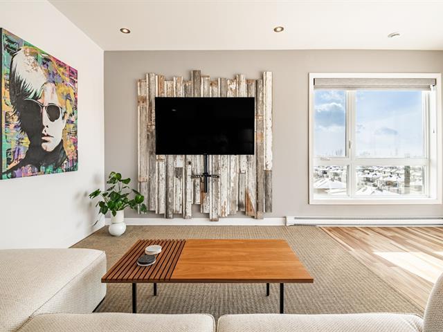 COUP DE COEUR! Sublime unité de coin située au dernier étage, offrant 2 chambres à coucher, 2 salles de bain complètes et un stationnement intérieur avec borne de recharge pour véhicule électrique. Son orientation Ouest et sa vue panoramique entièrement dégagée sur le Centre-ville de Montréal, le Mont-Royal et le pont Champlain la distinguent parmi les plus belles du secteur. Un mode de vie véritablement exceptionnel, au sein d'un immeuble soigné proposant une piscine extérieure creusée et chauffée, des ascenseurs et des espaces de stationnement extérieurs additionnels pour les résidents et leurs visiteurs. À découvrir sans tarder! (55961463)