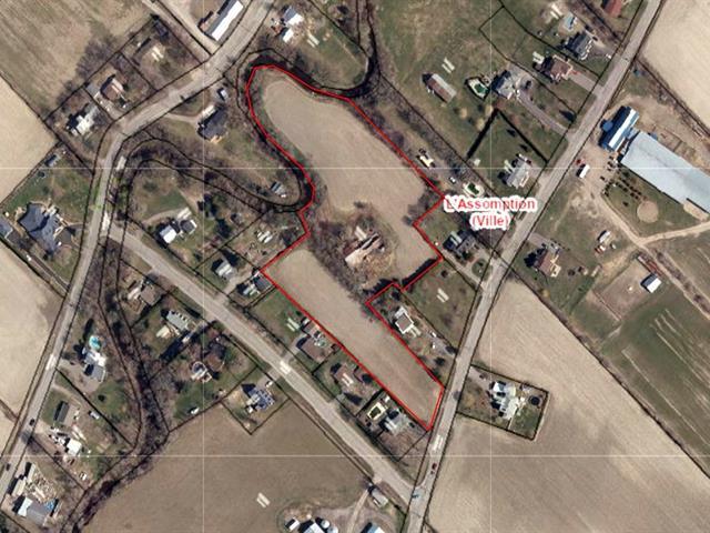 Possibilité de fermette. Terrain vacant situé dans un beau secteur de L'Assomption et tout près des services et de l'autoroute 40. Aqueduc municipal à être branché. Zoné agricole en ilot déstructuré. Constructible pour résidentiel maison détachée (plain-pied ou maison à étages) selon les normes applicables de la ville de L'assomption. Une partie du terrain est située en bordure d'une ruisseau et parsemée de magnifiques arbres matures. Informez vous! Rare sur le marché. TPS/TVQ doivent être ajoutées au prix demandé (48765602)