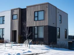 En bordure d'un boisé, cette maison de ville se distingue par son architecture épurée et sa relation directe avec la nature. Les volumes ouverts, les plafonds de 9 pieds et la cuisine à îlot central créent un espace lumineux, fluide et cohérent. À l'étage, trois chambres et deux salles de bains complètes sont pensées pour un confort durable. Le sous-sol aménagé, les 3 espaces garage privés, la terrasse intime et l'aménagement paysager complètent une expérience résidentielle sans compromis. Qualité de construction reconnue : cote AA du GCR et titre Maître constructeur Diamant de l'APCHQ. TPS/TVQ doivent être ajoutées au prix demandé (50813333)
