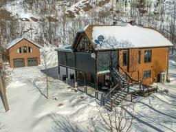 Découvrez ce somptueux plain-pied contemporain avec walk-out, 2 680 pi², construit en 2013, niché sur un terrain plat de 2,14 acres offrant 380 pieds de façade sur la majestueuse rivière Gatineau. Cette propriété haut de gamme propose 2 chambres, un vaste walk-in, 2 salles de bains et un loft au-dessus du garage. Aire ouverte, plafonds élevés, lumière abondante, matériaux nobles et systèmes de qualité supérieure. Profitez de 5 garages, d'un spa, d'un héliport et de vues panoramiques exceptionnelles. Située près du centre de ski Mont-Cascade et à seulement 15 minutes du pont Alonzo. Un bijou privé et rare sur le marché! (55628715)