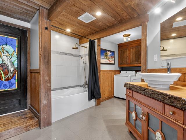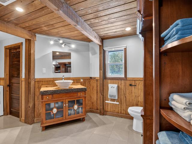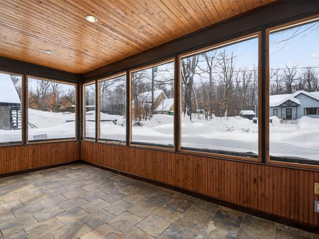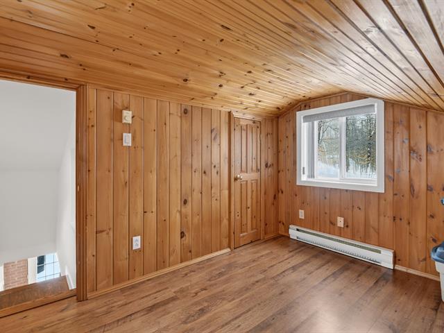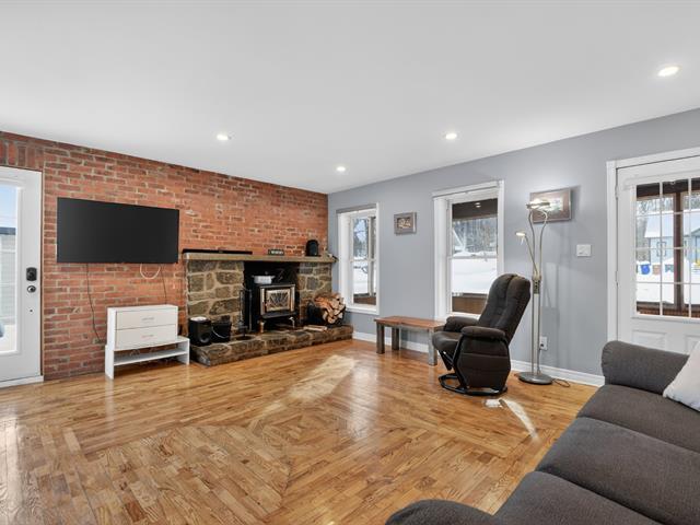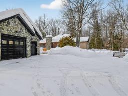 Propriété distinctive nichée sur un immense terrain boisé, offrant un cadre naturel paisible et un véritable style de vie en harmonie avec la nature. Construite sur dalle de béton et rénovée avec soin, elle se démarque par son impressionnant garage double largeur avec 2e étage à entrée indépendante, idéal pour bureau, atelier, rangement ou projets personnels. Salon chaleureux avec plancher de bois et poêle à bois, donnant accès à une véranda invitante. Cuisine et salle à manger modernes, 3 chambres et grande salle de bains. Puits artésien récent, remise, terrasse, gazébo et foyer extérieur. Véritable havre de paix, à proximité de Montréal. (56868724)