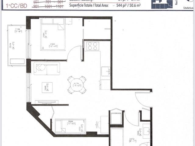 Meublé avec 1 lit, 1 table et 4 chaises! L'immeuble comprend une piscine sur le toit, un gym, etc. 1 chambre, 1 den, 1 balcon, 1 casier inclus. (55176564)