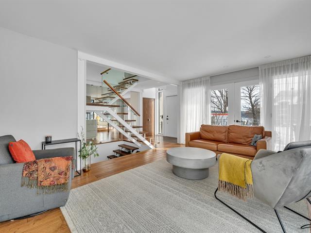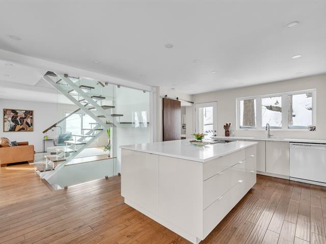 Superbe propriété moderne sise sur la rue de la Promenade! Rénovation majeure en 2011: agrandissement salle de séjour avec garage en dessous. Les fenêtres des 2 étages du haut remplacées, de même que le parement en Adex. En 2014 cuisine rénovée. Sous-sol refait en 2022. Revêtement de toiture élastomère en 2025. Belle aire ouverte au RDC, avec son immense cuisine, 2 foyers. À l'étage, nous retrouvons deux chambres, une grande salle de bains et un bureau (pouvant être une chambre). Belle suite d'invités au sous-sol avec salle familiale. Terrain bien aménagé dans un environnement boisé. Une visite vous convaincra! (56744311)