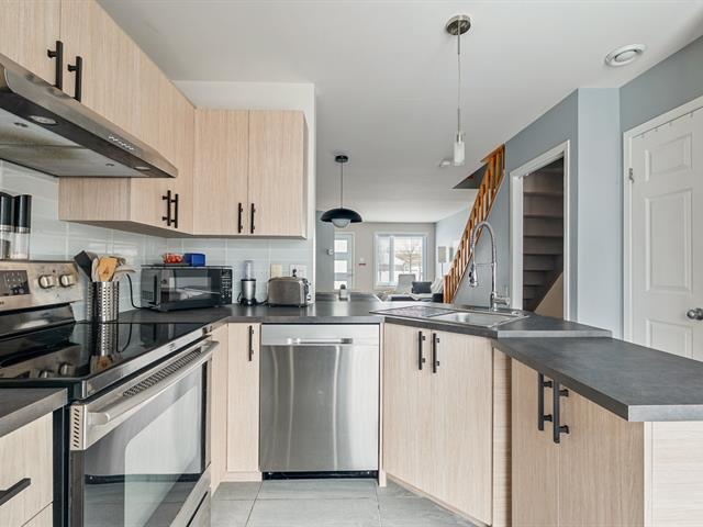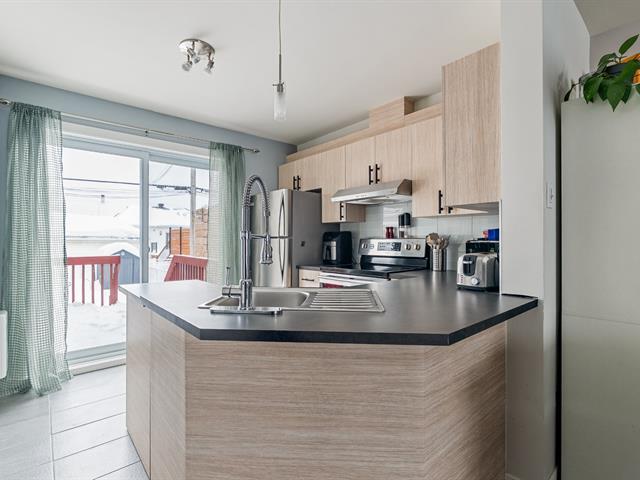 Charmante maison de ville détenue en copropriété, située en face de l'école Saint-Jean-Eudes et à proximité de tous les services. Elle propose trois chambres, dont deux à l'étage, une salle de bain complète ainsi qu'une salle d'eau. L'intérieur a bénéficié d'une mise à jour récente, offrant un espace clé en main et fonctionnel. Vous apprécierez la cour arrière clôturée ainsi qu'une salle familiale aménagée au sous-sol. La propriété est munie d'un climatiseur mural. Un stationnement en tandem permet d'accueillir deux voitures. Une occasion à saisir pour ceux recherchant emplacement et qualité de vie. Demandez votre visite rapidement! (48029745)