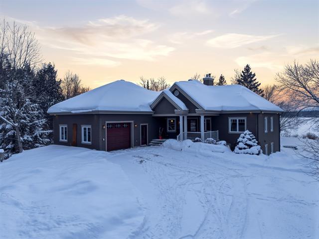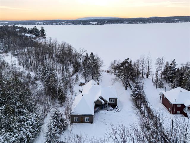 BORD DE L'EAU 135 PI -- Érigée sur un terrain boisé de 1,13 acre, cette résidence champêtre contemporaine offre un cadre de vie exceptionnel avec potentiel bi-génération. Le rez-de-chaussée lumineux comprend un salon avec foyer au bois, une cuisine fonctionnelle et une salle à manger à aire ouverte. La suite principale avec salle de bain attenante, un bureau fermé et une chambre complètent l'étage. Le rez-de-jardin aménagé propose une salle familiale, cuisinette, salle de bain et deux chambres, idéal pour logement indépendant. Terrasse, piscine chauffée, accès direct au lac Magog et deux garages. (53729483)