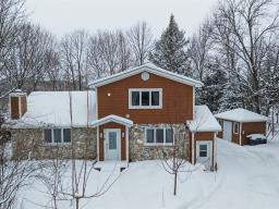 NOUVEAUTÉ - Nichée au coeur de la nature à Bromont, cette propriété à étages s'étend sur un terrain intime de 17 802 pi² bordé par la rivière Yamaska. La maison offre 4 chambres à coucher ainsi qu'un bureau fermé pouvant servir de 5e chambre, 3 salles de bains complètes. L'aire de vie à aire ouverte avec toit cathédrale crée une ambiance élégante et lumineuse. Le vaste sous-sol propose de généreux espaces pour salles familiales à plusieurs vocations. Galerie arrière idéale pour profiter du paysage. La propriété a bénéficié de permis pour location de type Gîte / Bed and Breakfast. Une opportunité rare alliant confort, nature et investissement. (57887662)