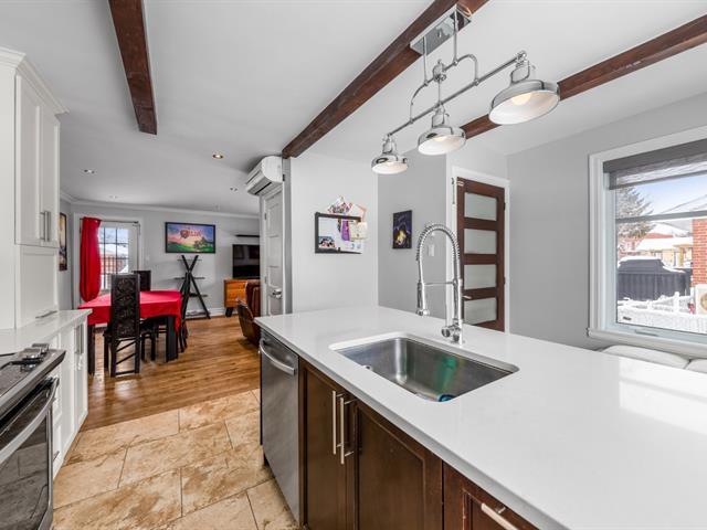 Excellent rapport qualité prix propose ce bungalow plein pied situé sur un coin de rue avec un terrain de 9601 pc, 3 chambres , 2 salles de bain complètes, plancher de bois, plusieurs rénovations ont été effectués au fil des ans tel le pieutage et drain francais en 2004, isolation des murs (uréthane) et entre toit (laine soufflée),panneau élect. 200 ampères, armoire de cuisine en polyester avec ilot et comptoir en quartz (2014),plancher chauffant au niveau de l'entrée, cuisine et sdb(haut),toiture refait en 2013,sous-sol bien aménagé, sortie ind. sur le coté, échangeur d'air, poss. d'ériger un garage, aucun voisin à l'avant, occupation juin. (54149314)