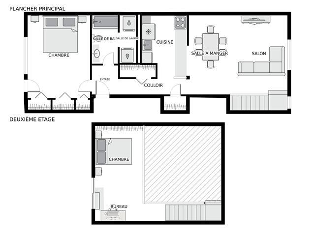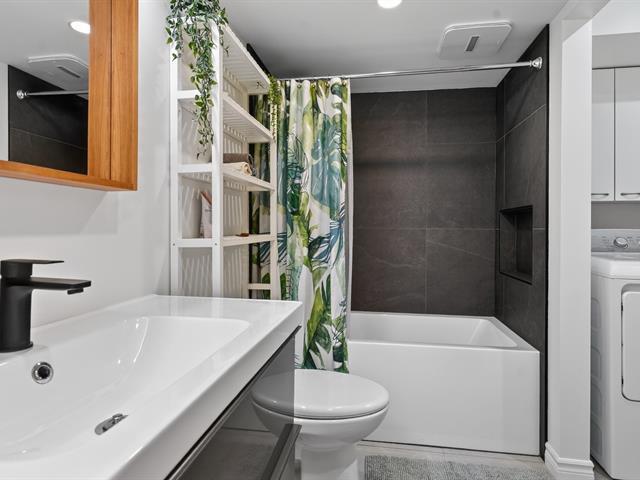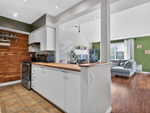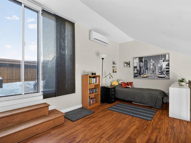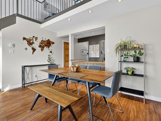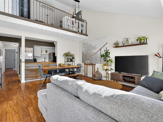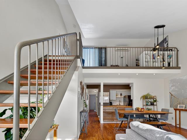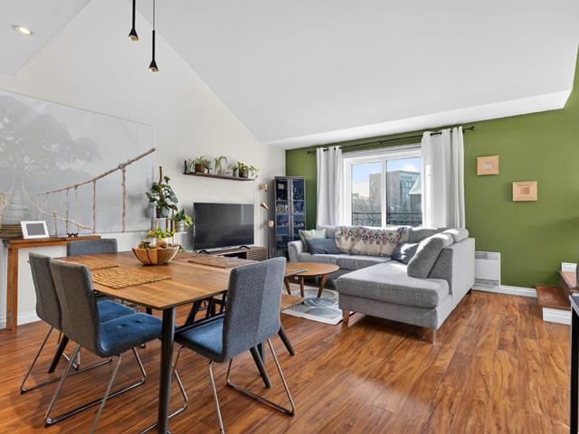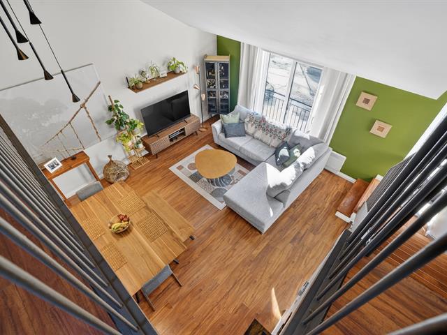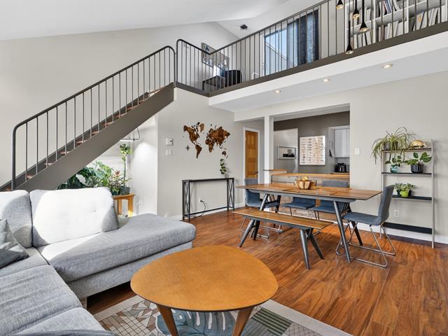 Condo sur 2 niveaux avec plafond cathédrale, terrasse privé et garage . Au dernier étage d'un immeuble de 6 unités. Espace lumineux, fenestration abondante, salle de bain refaite avec plancher chauffant, grande chambre avec garde robe de 11 pied . Cuisine fonctionnelle avec ilot s'ouvre sur la salle à diner et salon atmosphère inspirant lié au plafond cathédrale de 14'. Mezzanine espace de travail ou seconde chambre avec porte patio donnant sur la terrasse privé et intime pour vos soirées d'été. La thermopompe vous offre confort en toute saison cout annuel 843$. Quartier homogène, piste cyclable, transport, centre claude-Robillard (45355780)