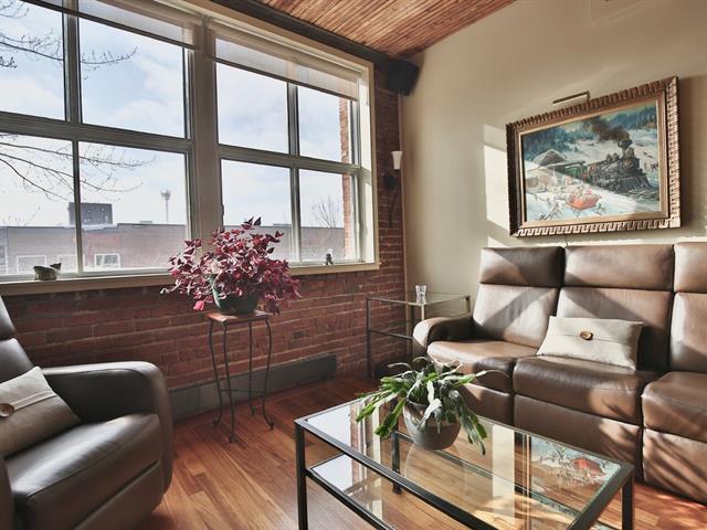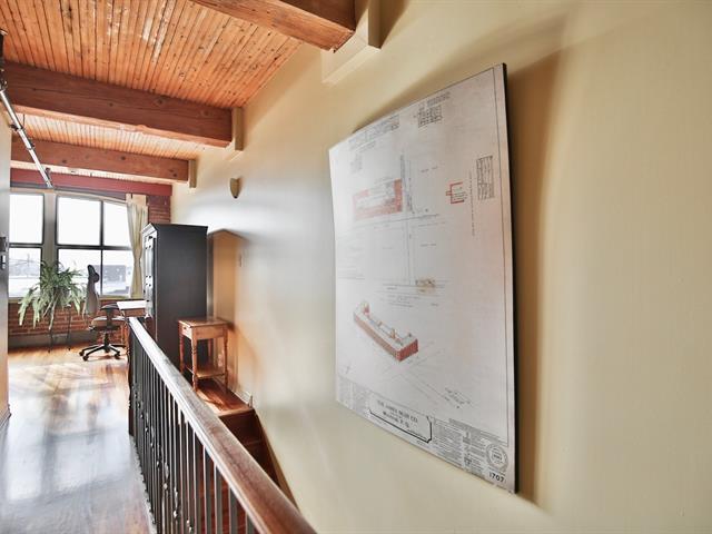 Bâtiment industriel et centenaire au coeur du HoMa. Loft de 1 112 p.c sur 2 étages. 2 chambres, dont 1 fermée. Lumineux. Vue sur la ville. 2 étages avec plafonds à 9' 7'' et magnifiques poutres. Murs de briques apparentes. Planchers et escalier en bois jatoba. 2 stationnements extérieurs, éclairés et côte à côte. Grand espace de rangement chauffé, adjacent au condo, plus 2 autres espaces de rangement au sous-sol. À distance de marche de tous les services, métro, parcs et pistes cyclables. Demandez votre visite ! (57622980)